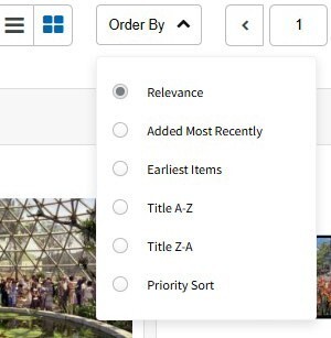 The search will rank results by relevancy, with best matches to the search terms highest in the results. These options can be changed in the Order By menu on the right side: