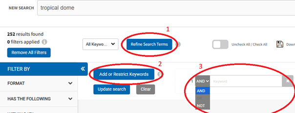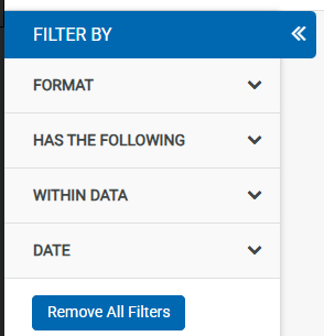 This search offers five refining options – Format, Within Data, Search Within Data, Date and Search For.